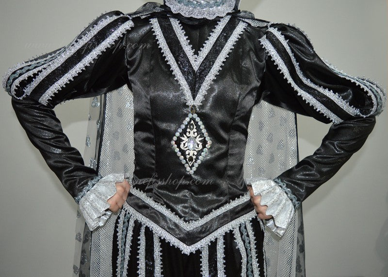 This professional stage costume is made out of semi-stretchy taffetas fabric.