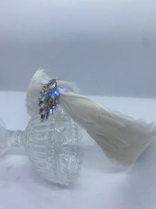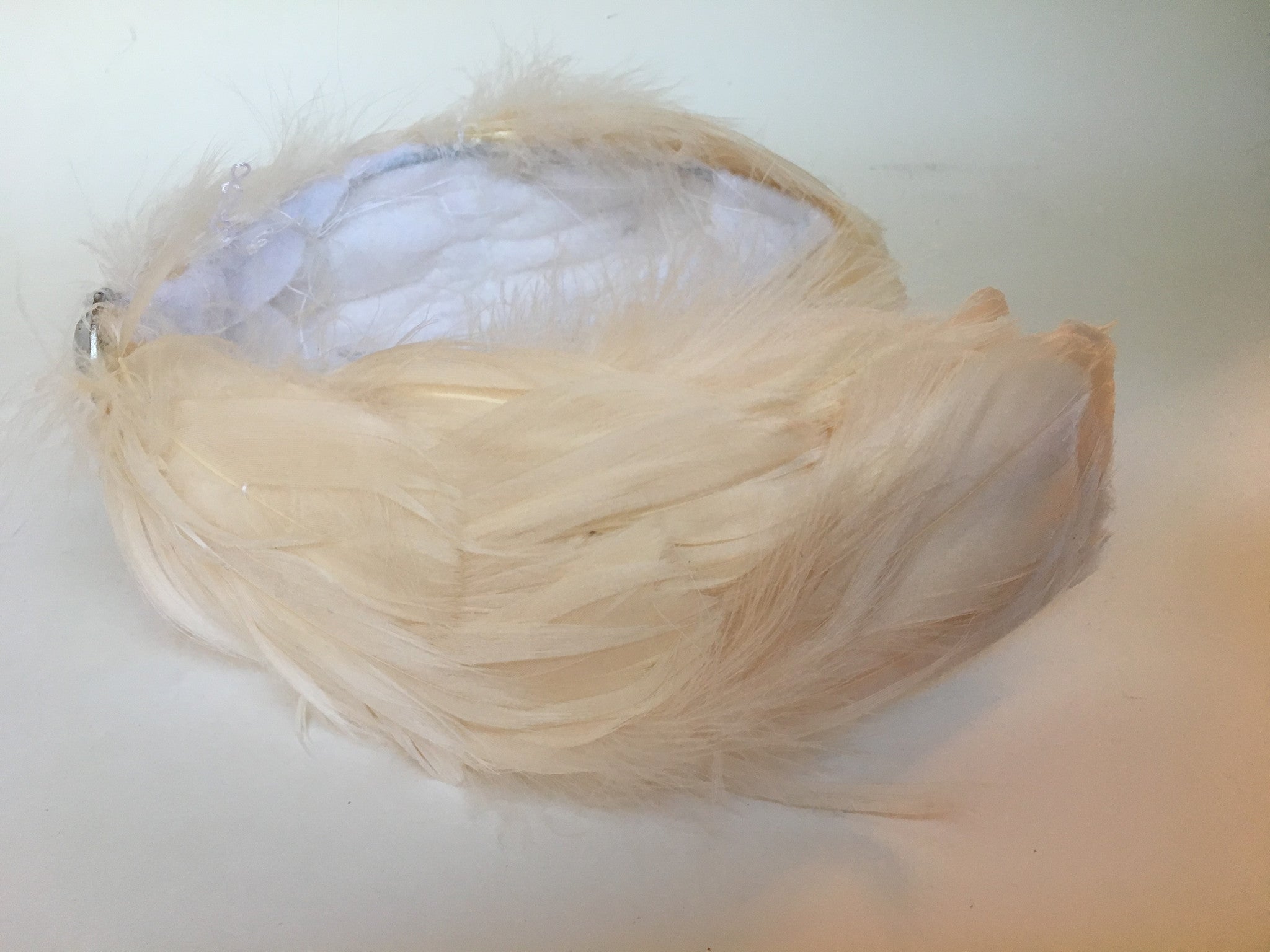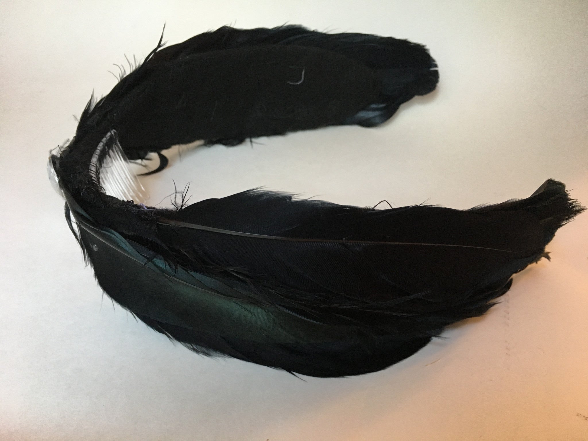 These amazing, hand made headpieces are made from: goose feathers, wire, felt, thread, central rhinestone, hair comb