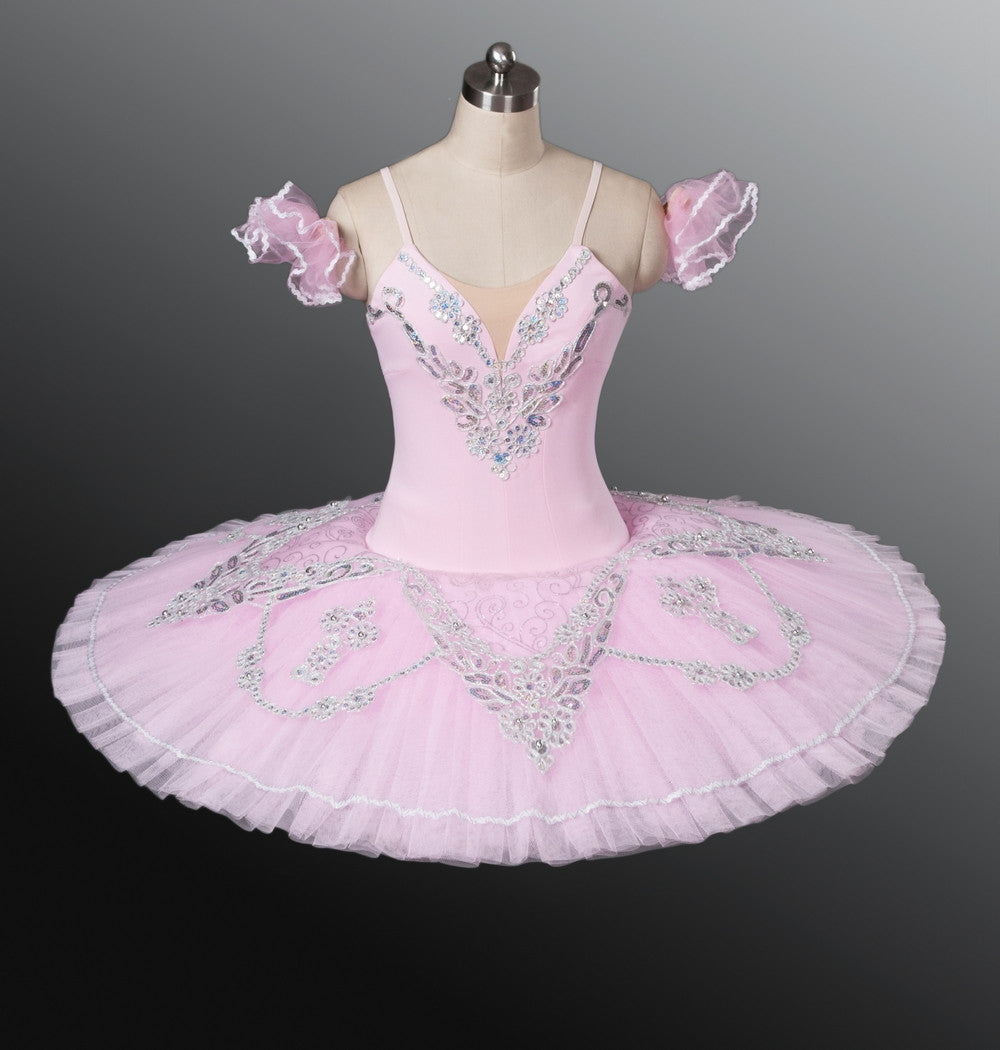 This refined professional platter tutu is created for roles like Princess Aurora in the Sleeping Beauty and also for Sugar Plum Fairy. Very suitable for "Aurora's Birthday Variation", due to its youthful look and pastel pink color. This costume is also suitable for many other classical variations.