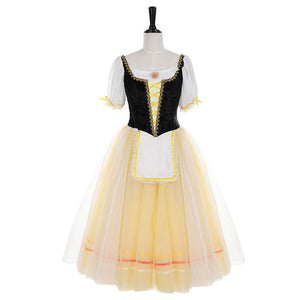 The white sleeves and a yellow flower in the middle of the chest, complete the Romantic, peasant look of the tutu bodice.