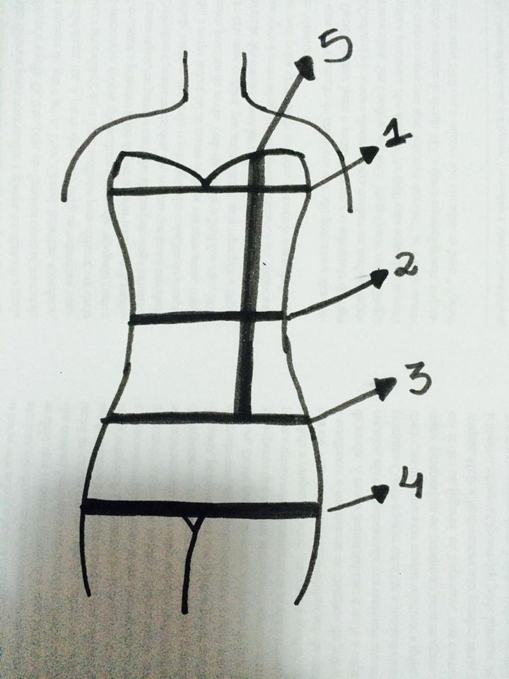 Custom made. Please send measurements (in centimeters) to: trishdance@hotmail.com as indicated in the diagram below.