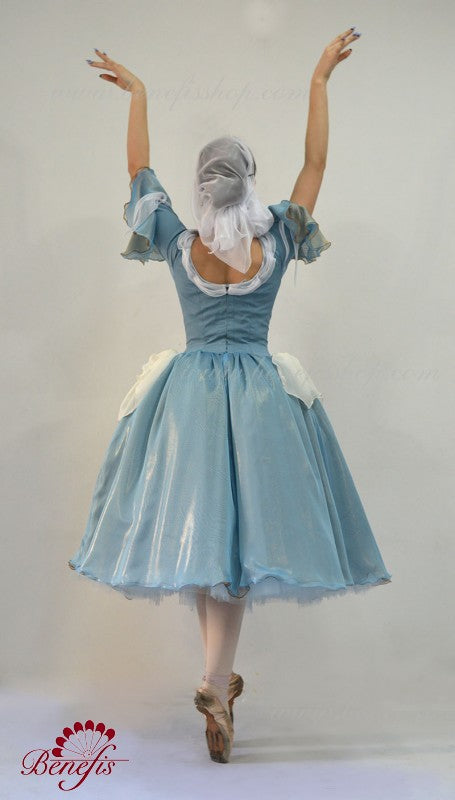 Cinderella's Act I rag costume. Dress, apron, and shawl. Bodice with sleeves. Made of semi-elastic fabric, chiffon sleeves, apron and skirt.