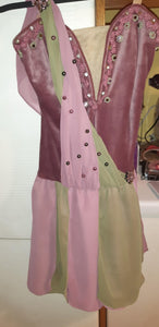 The short, double layered chiffon skirt boasts decorations with golden trims and flowers, for an amazing look on stage.
