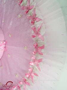It is a professional ballet costume, which is made on the basis of a basic professional tutu # T 0001(see “Basic and rehearsal tutus”).