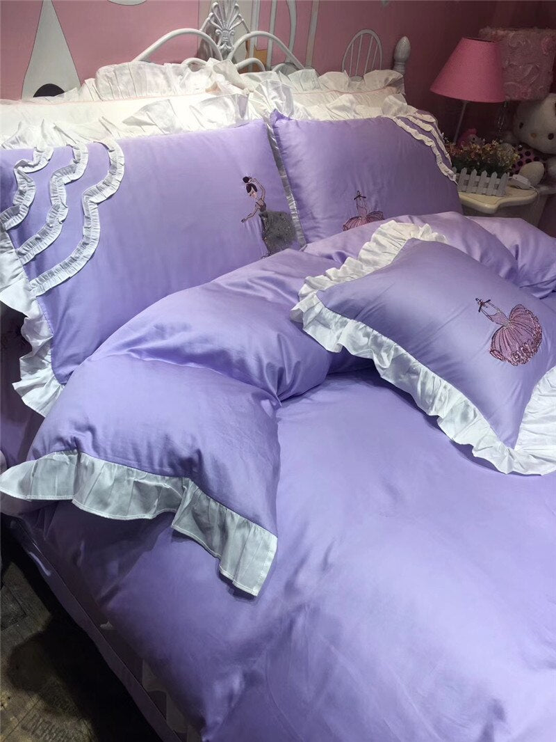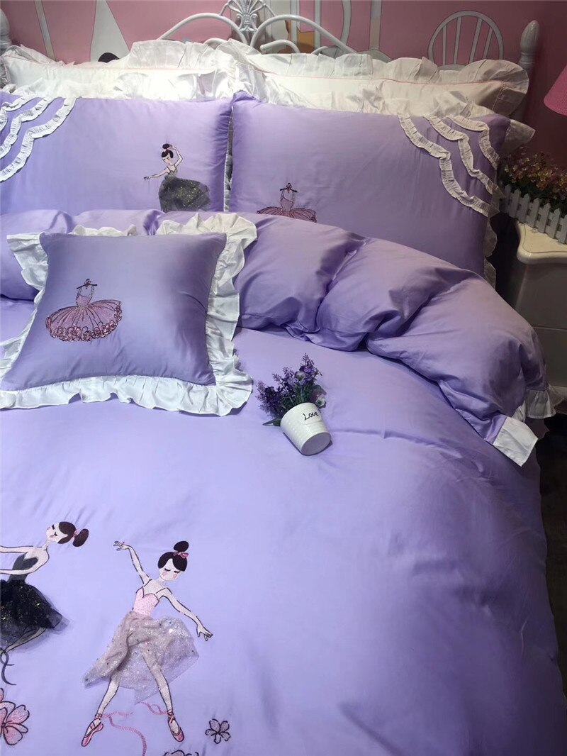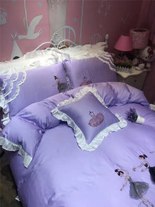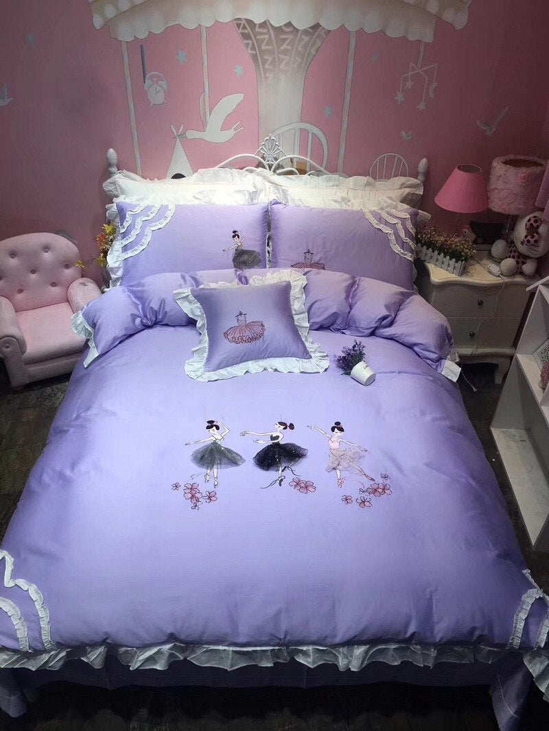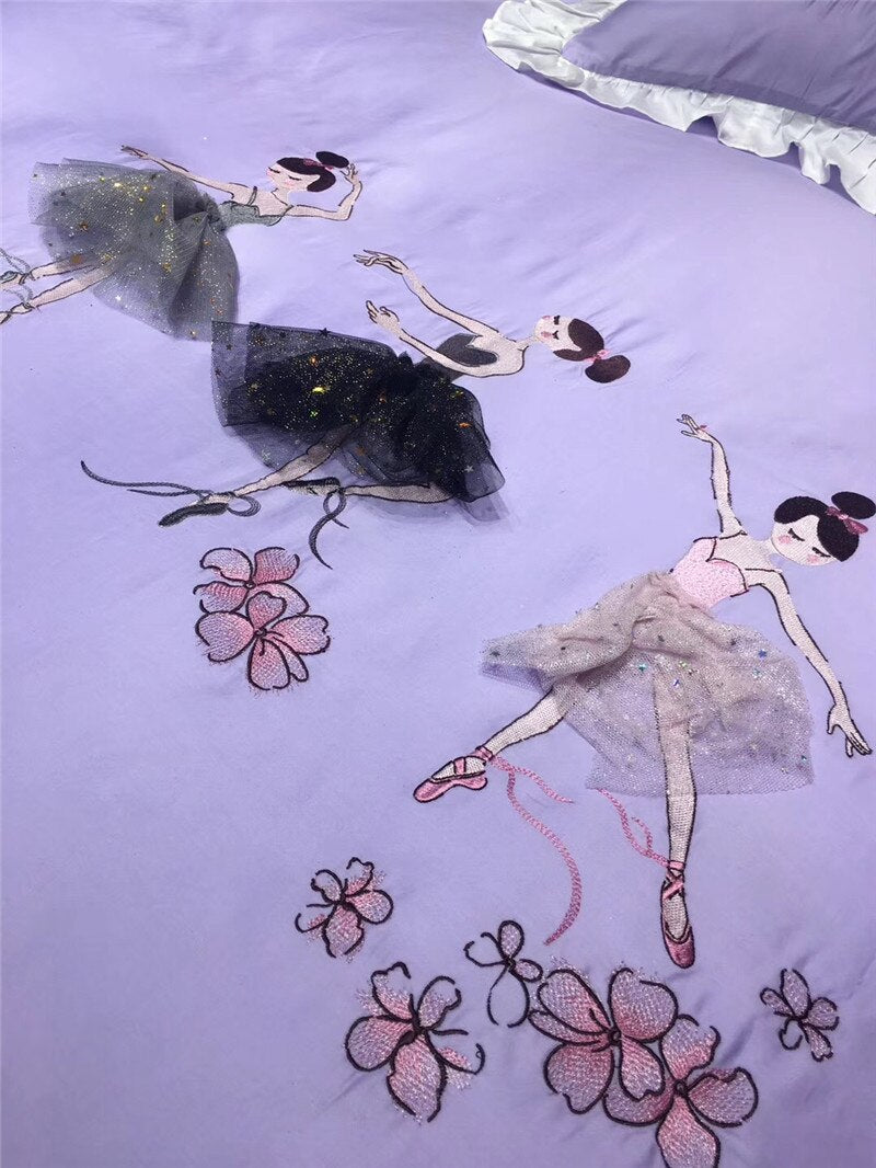 Amazing ballerina bed set in a shade of lilac to die for, with three-dimensional appliques.
