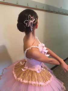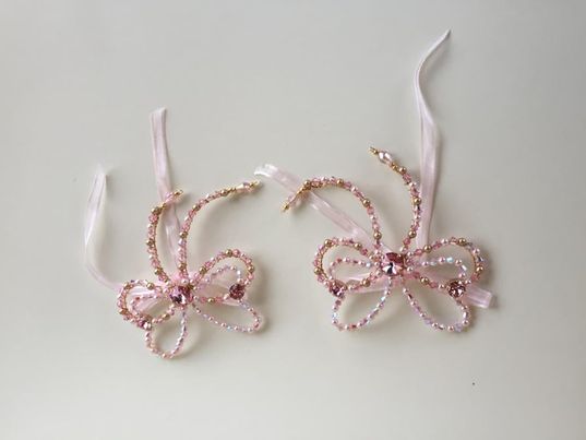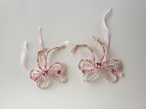 Unique headpiece created for any Fairy Doll costume. This tiara features a wide pink bow decorated with sparkles, attached to a silver tiara with a pink, big tear crystal as front drop.