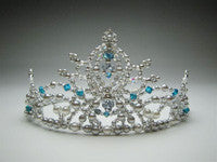 Stunning hand made head piece on a silver base with blue crystals. Decorated with a blue feather and boasting a beautiful front drop. Designed by a famous artist.
