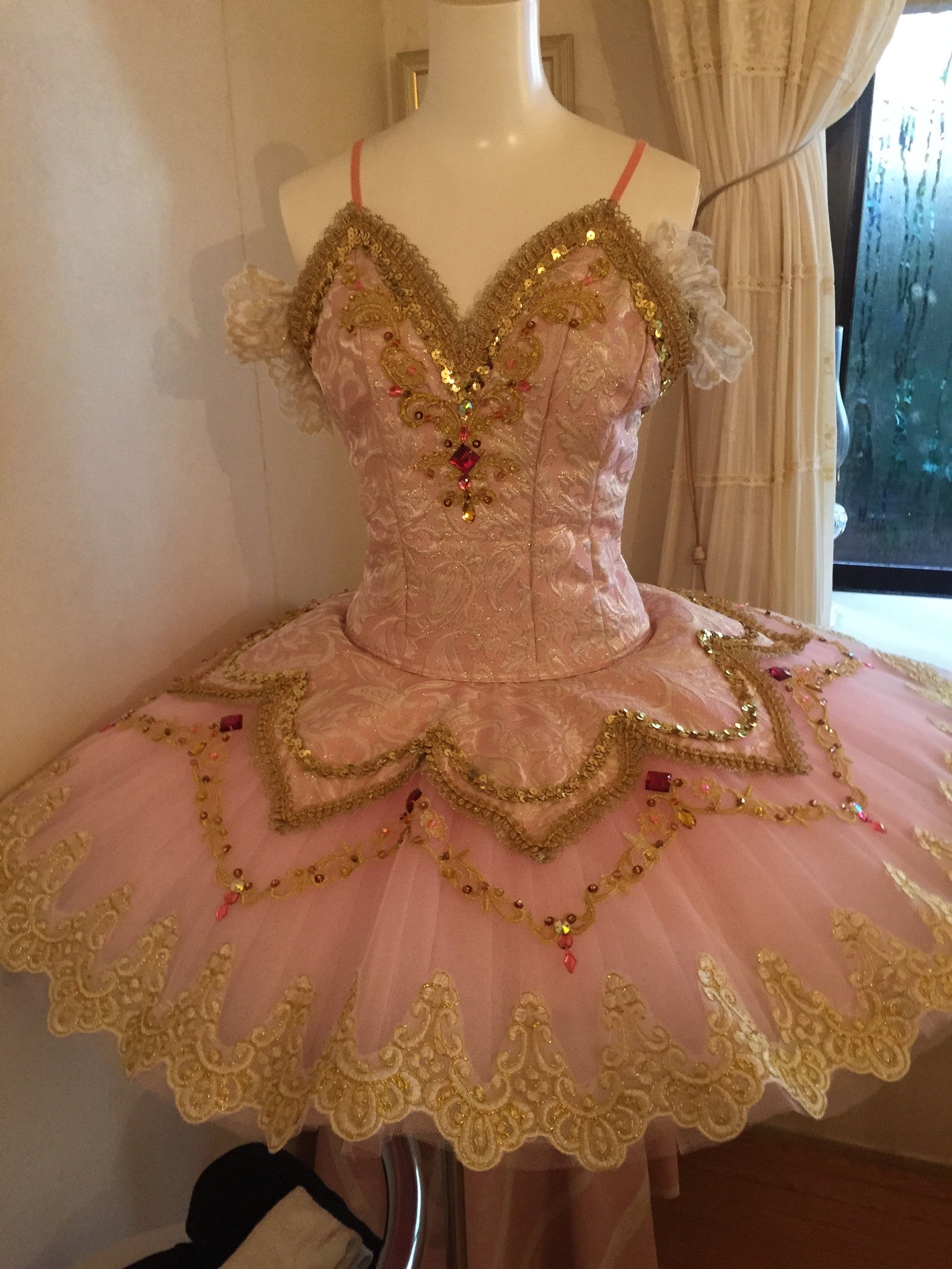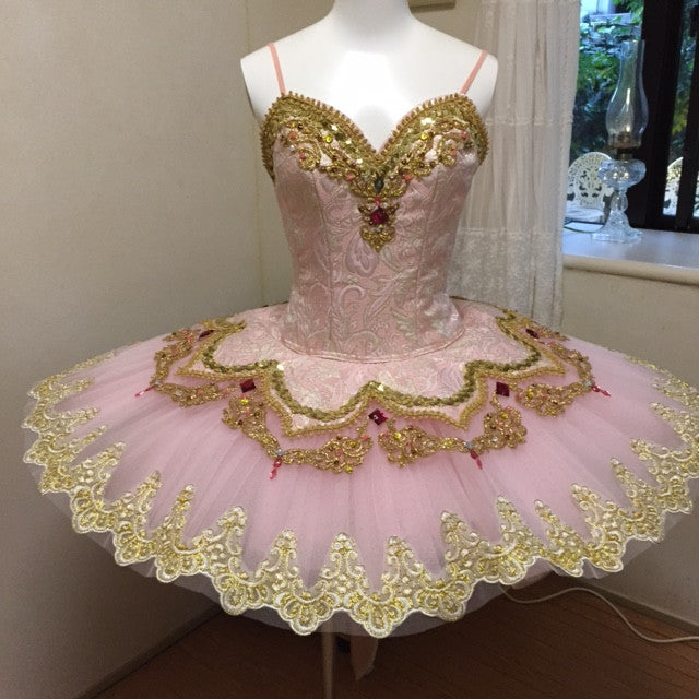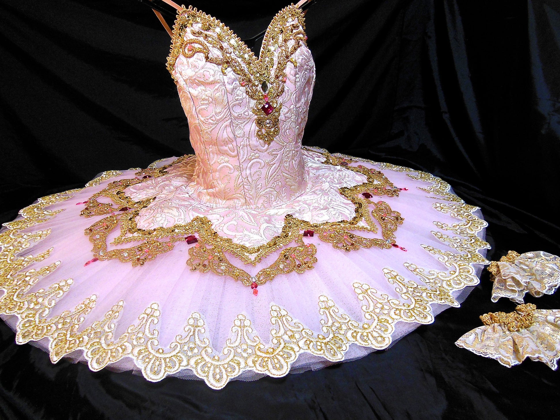 The edges of the tutu are embellished with French cream and gold lace.