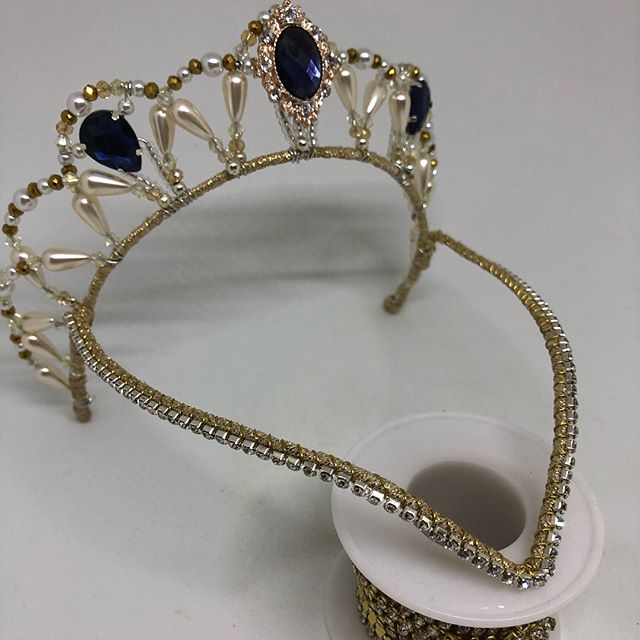 An exclusive headpiece especially created for the role of Juliet and built according the traditional medieval style. This headpiece is entirely created with rhinestones, white pearls and crystals. Front drop down. Built on a net frame, making pinning very easy.