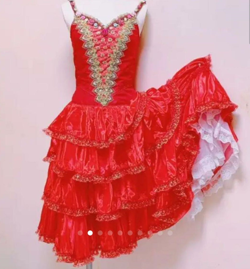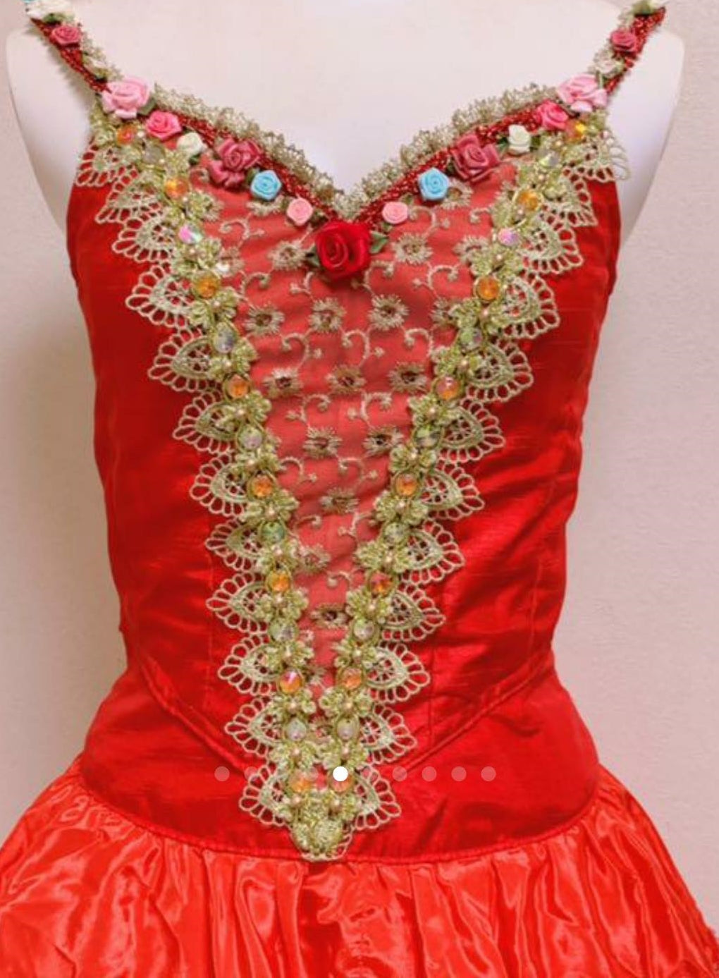 This stunning stage costume is ideal for the first entrance of Kitri in the ballet Don Quixote. It can also be used for any other classical , Spanish style variation.