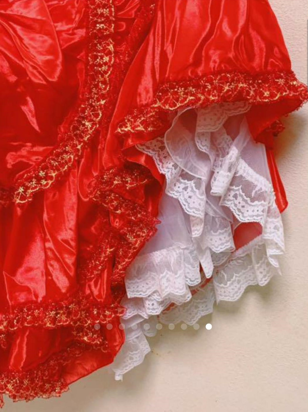 The red four layers skirt is made with the finest taffetas and each layer is decorated with high quality golden lace.