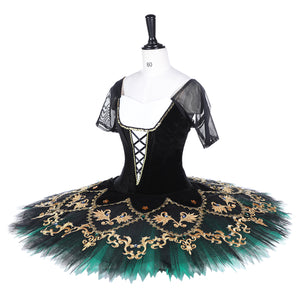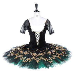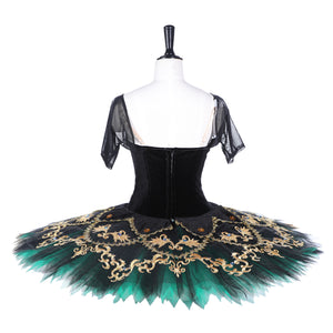 The professional, ten layers tulle tutu skirt is deep dark green, featuring a black top layer.