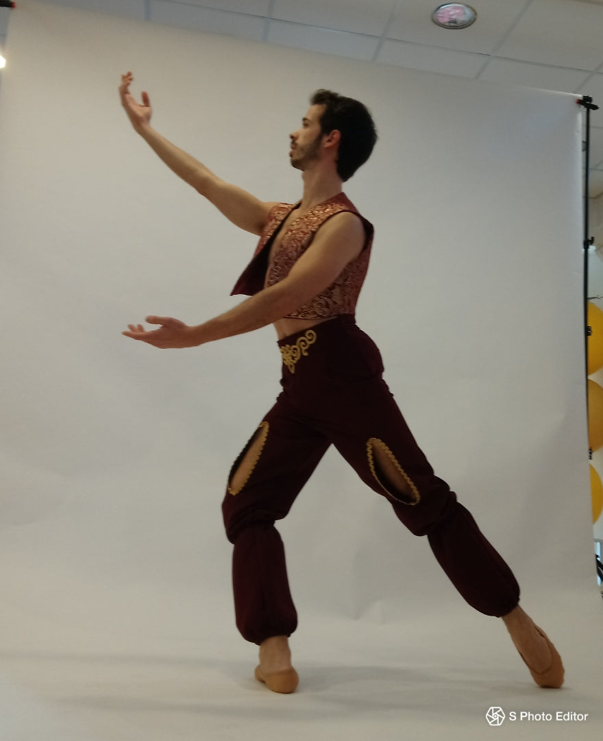An exclusive costume for the role of Lankendem (The Slaves' Merchant) in the ballet "Le Corsaire". This stage costume has been made following the typical style for this role.
