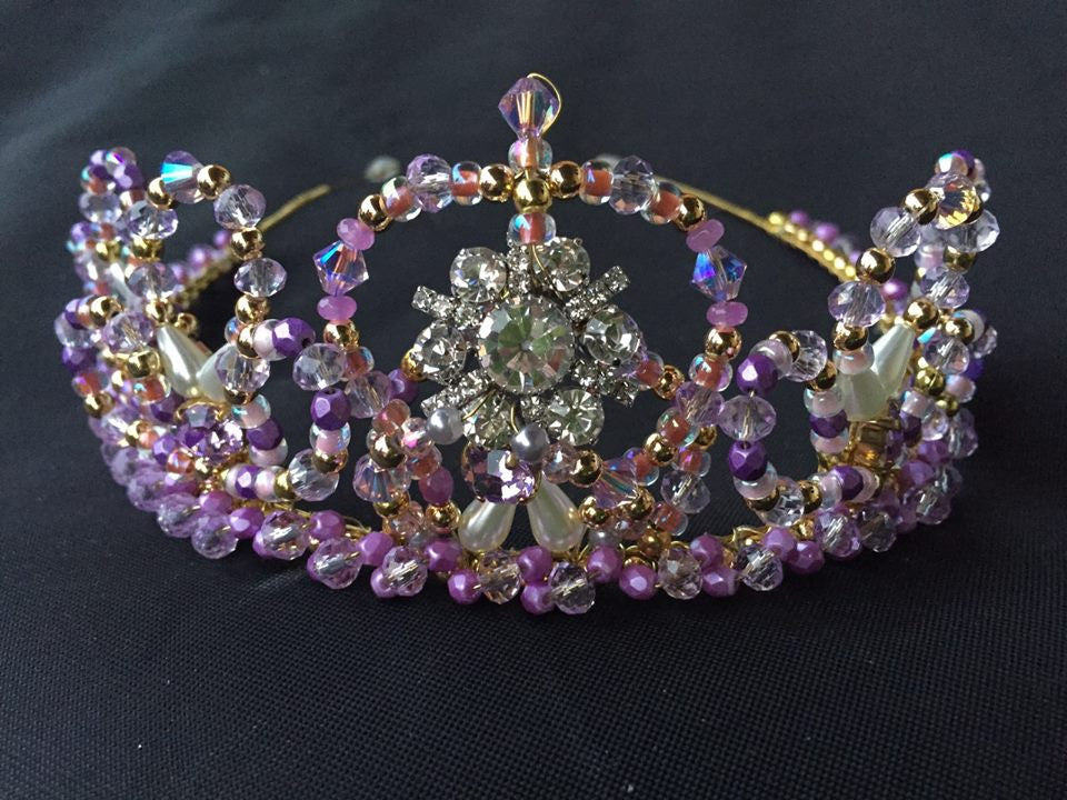 This amazing lilac tiara is entirely created with lilac Swarovski crystals, white crystals and white pearls.