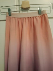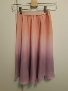 Ombre hand dyed rehearsal pull on circular skirt in gradint shades of pink and lilac.