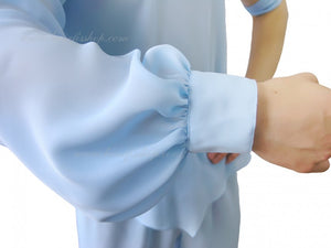 Details: shirt, pants, hat, ties. Made of chiffon.