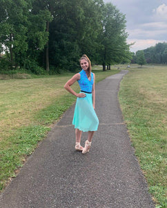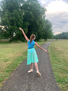 Our Ambassador Lilla has matched Miami Beach with Rehearsal Skirt Peppermint Cream.