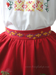 Skirt is made of natural high-quality fabrics. Embroidery is made on the special embroidering machine. This skirt is fastened on the back on hooks.