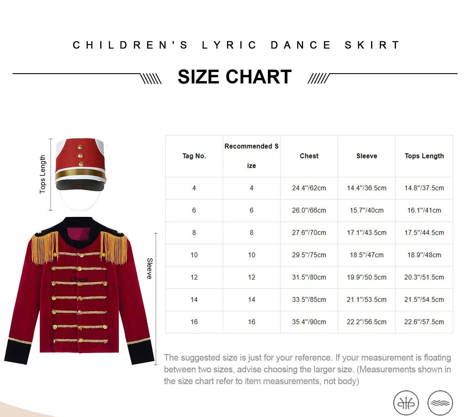 Child Nutcracker soldier jacket, available in red or blue. Complete with matching soldier hat.