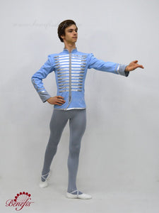 A professional male tunic in pale blue and silver for the role of the Snow Prince in the ballet The Nutcracker.