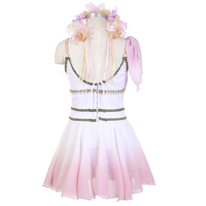 This white, ombre' hand dyed stage costume features gradient shades of pink or peach, according to your choice.