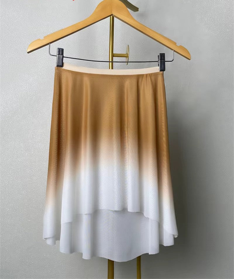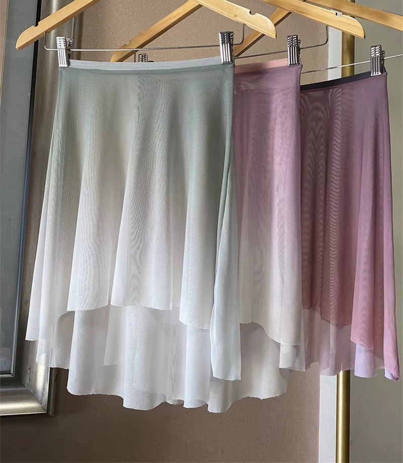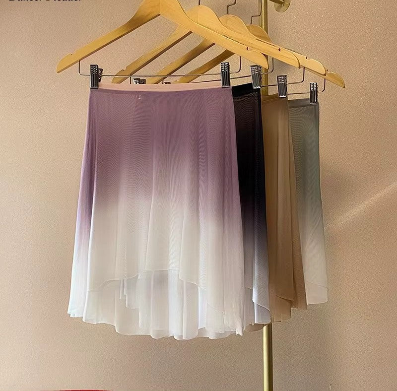 Our "Juliette" mesh skirt is a beautiful mesh, ombre' dyed ballet skirt, perfect for class and rehearsals. Longer in the back and slightly shorter in the front, to perfectly flow with the Dancer's movements.