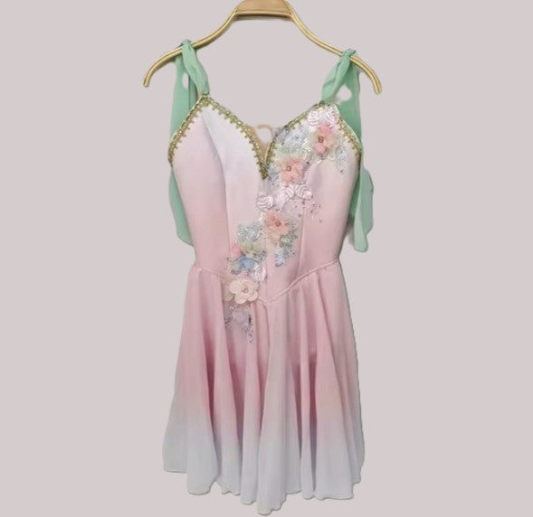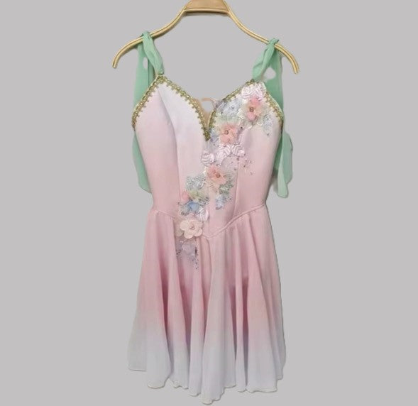 This chiffon stage dress has been ombre' dyed in gradient shades of pink, and made with the highest quality chiffon.