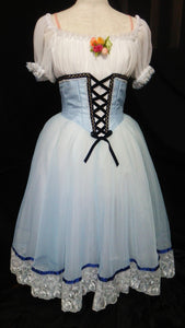 "Peasant Pas" is one of our most exclusive Romantic peasant tutus. Newly created and part of our 2019 Collection, this tutu is very young looking, elegant and the pale shade of blue color we have used,  is just adorable.