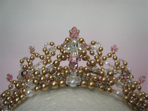 Built on a gold frame, it features a "princess crown" design using gold AB Swarovski crystals.