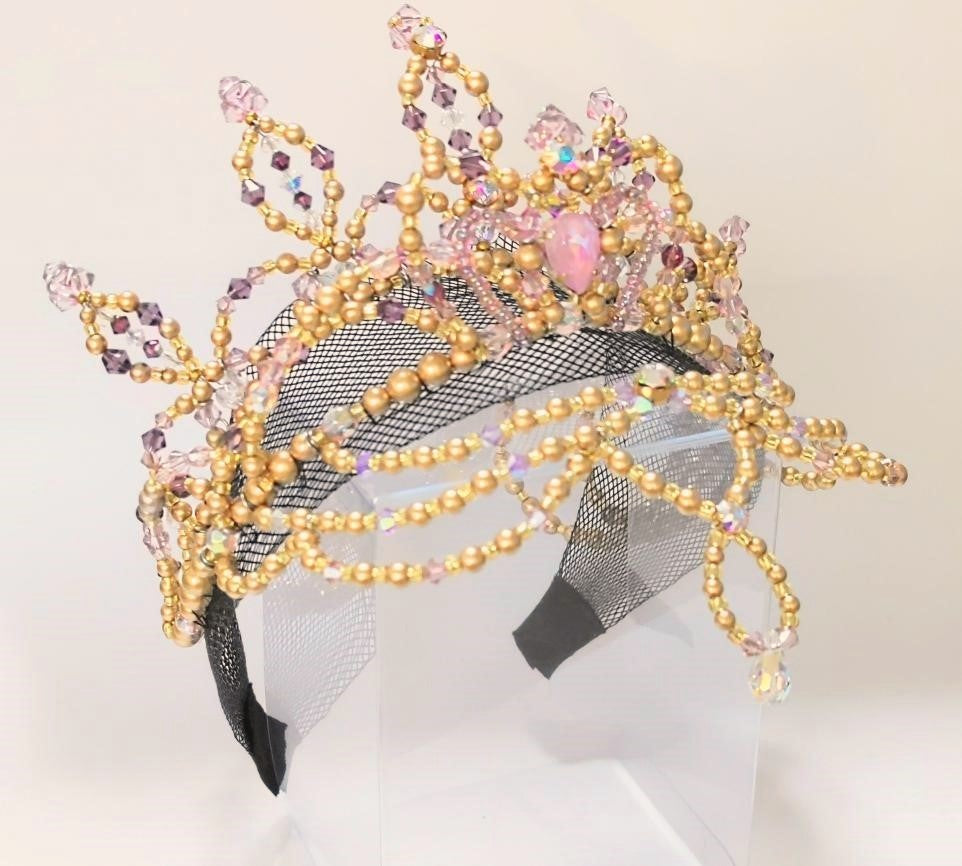 This professional tiara, built on a headband, with golden beads wiring, is ideal for any role like Princess Aurora, Sugar Plum fairy, Queen of the Dryads and many other classical solos.