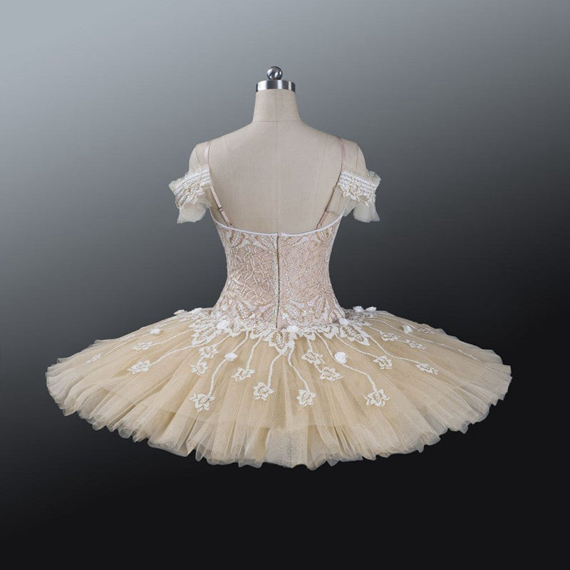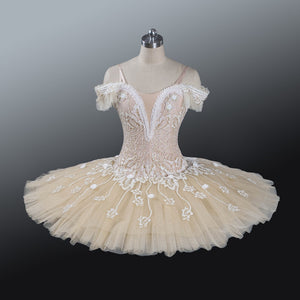 The delicate pale pink and ivory color and the exquisite floral decoration, makes it suitable for many ballets and especially for the role of Princess Aurora in the Sleeping Beauty the Dew Drop Fairy, and many other Grand Pas and solos.