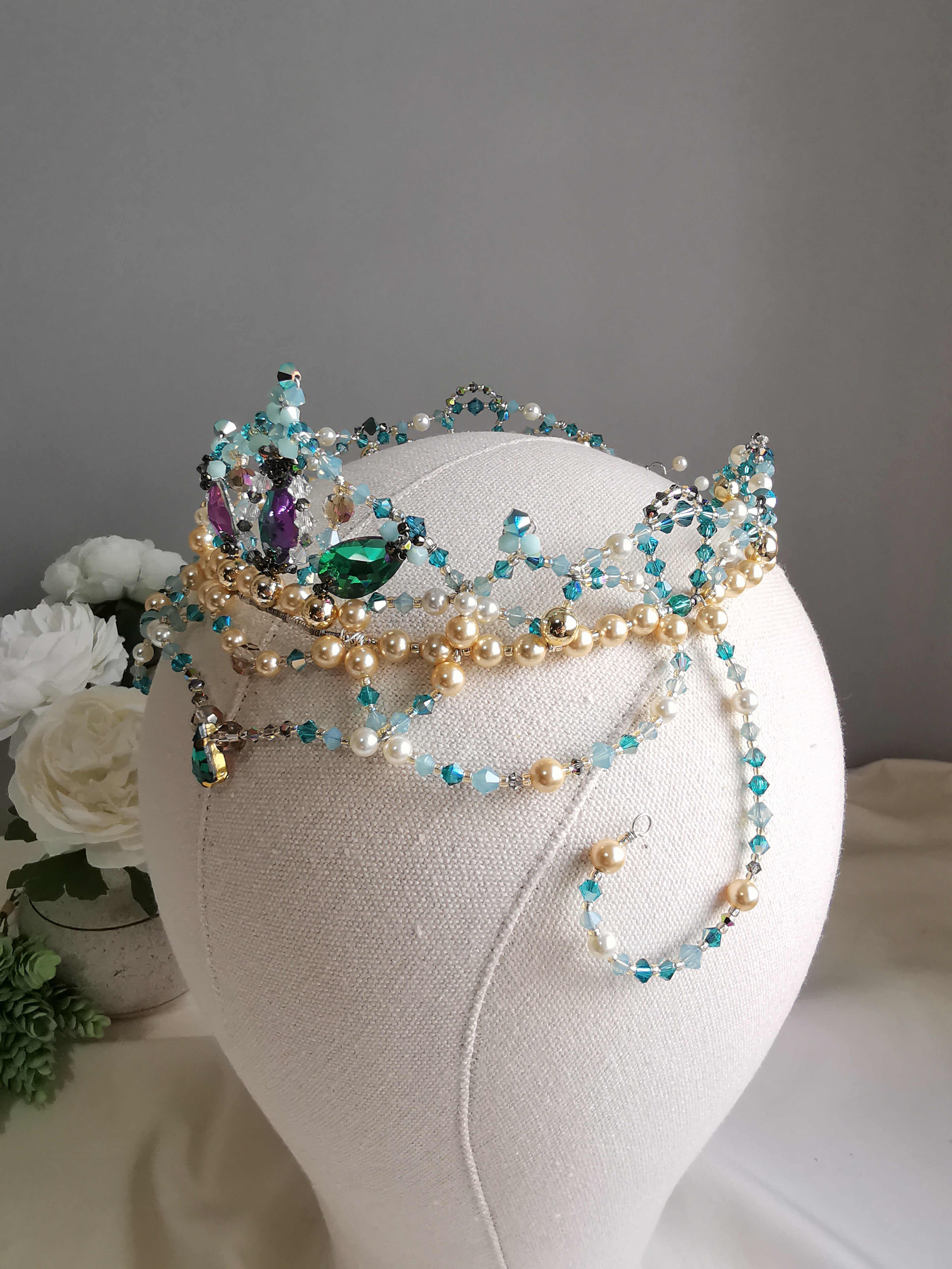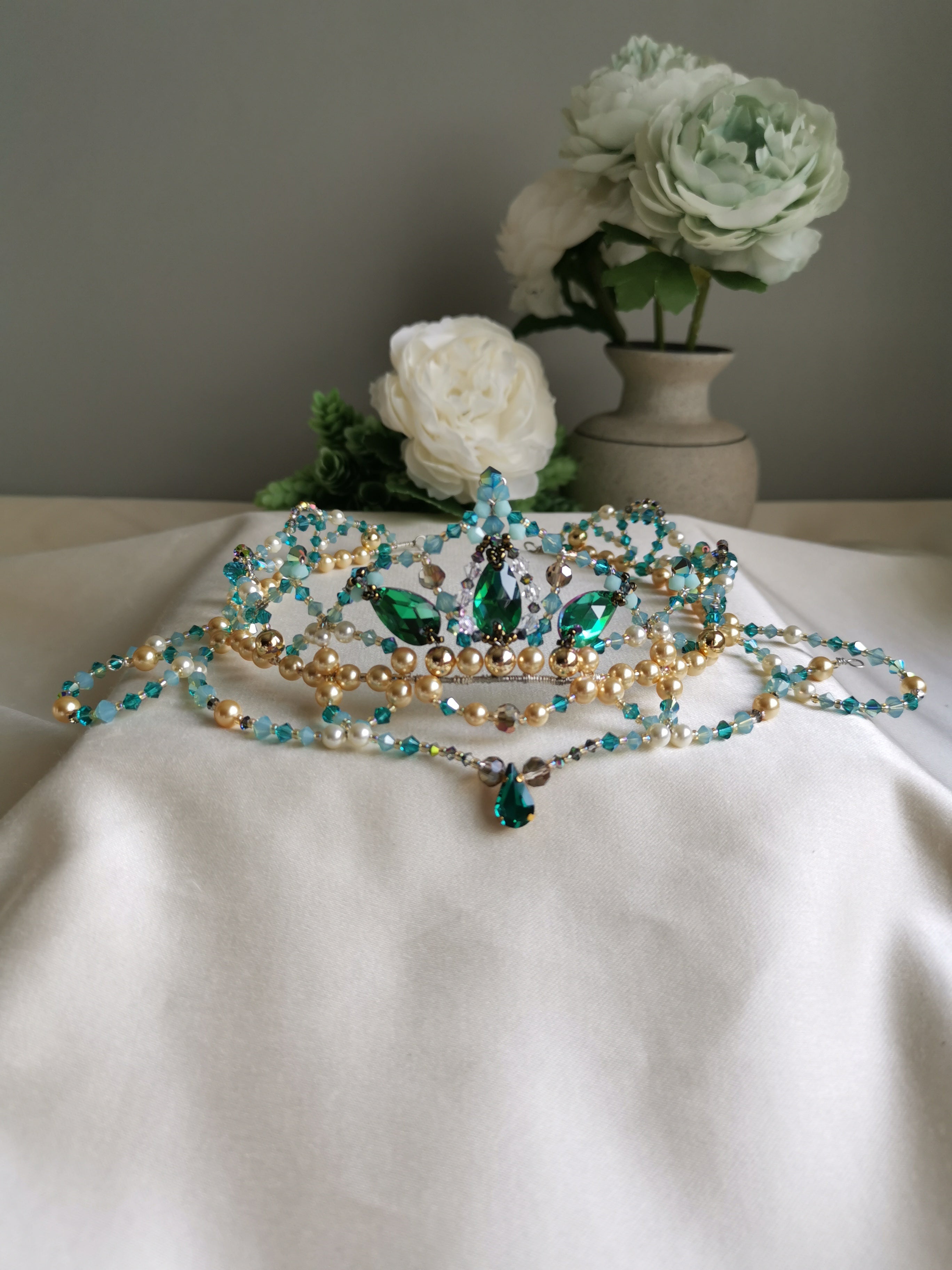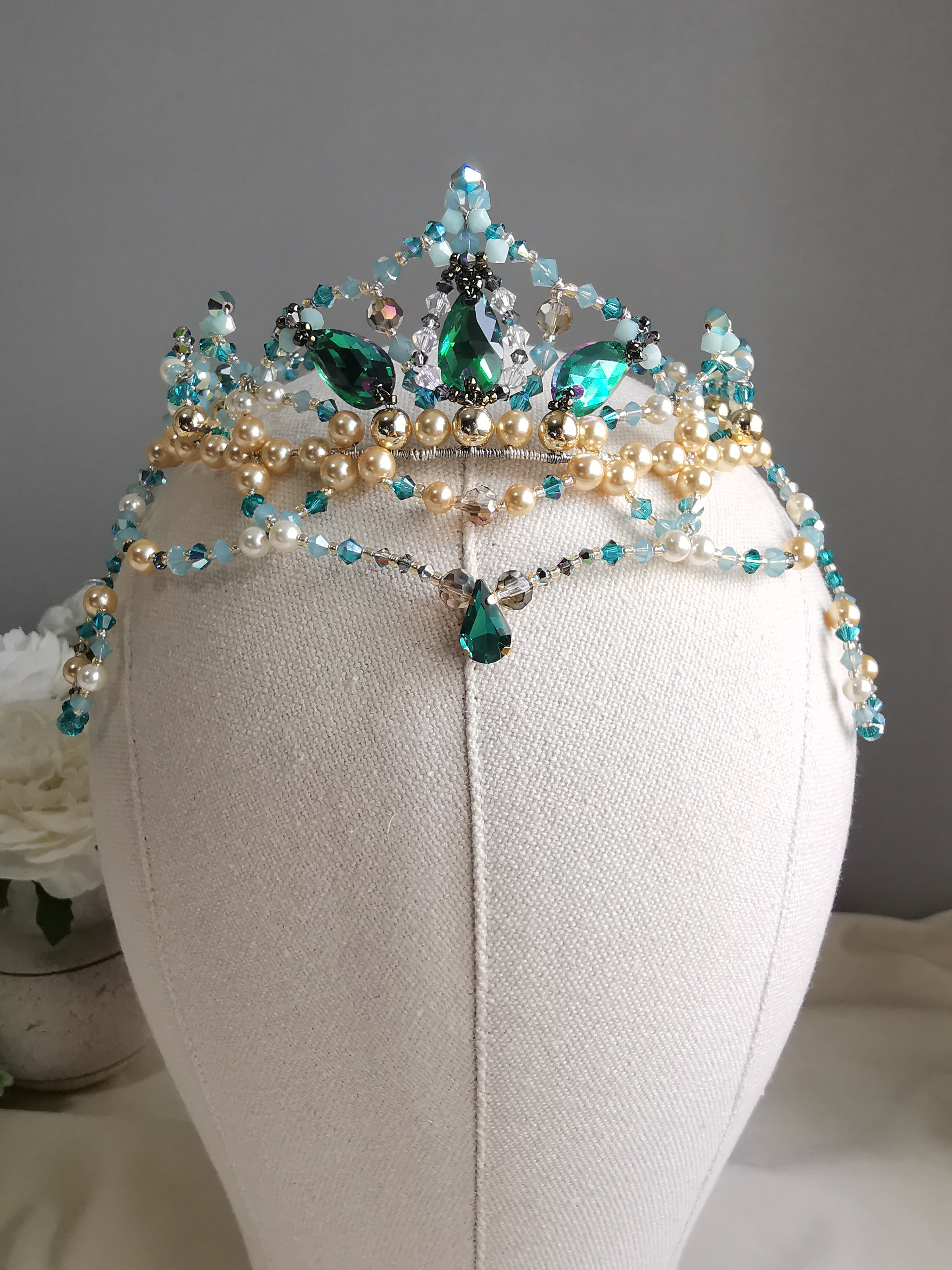 For this tiara we have used deep green crystals and rhinestones, for an amazing final result.