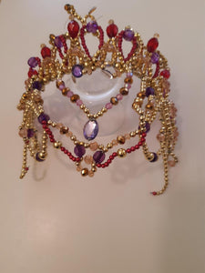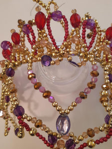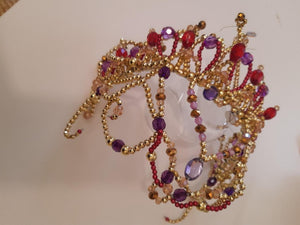 Amazing pink and purple headpiece, hand made on a golden base.