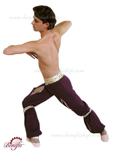 Details: wide trousers, headpiece. Wide trousers are made of crepe-chiffon, with cuts in front. The trousers are to be fastened on the back. The belt, cuts and cuffs on the trousers are embroidered with multicolored crystals of different size and form. The costume perfectly suits for the soloist’s part in “Le Corsaire” ballet.