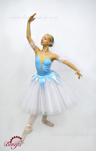 The white Romantic tutu skirt is made from 4 layers of tulle sewed to the leotard. Arm bands included.