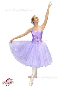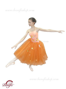 This professional ballet costume is based on the elastic leotard (the model T 0008) and a wide light skirt consisting of four light tulle layers, which is carried out on principals of a flared skirt.