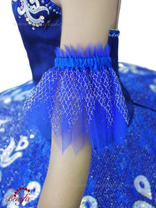 Arm ruffles are made of mesh and tulle.