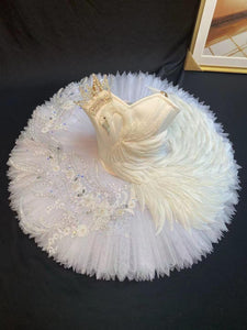 This white swan professional pancake tutu has been created for the role of Odette in Swan Lake, or for the solo "The Dying Swan".