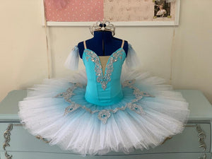 This is a special, unique creation designed by a famous ballet designer. It is a very sophisticated tutu that can be used for many ballets. Initially created for the role of "Sylvia", this delicate pale blue stage costume can be used for Sleeping Beauty, Snow Queen, Queen of the Dryads, Princess Florina, and many other classical variations.