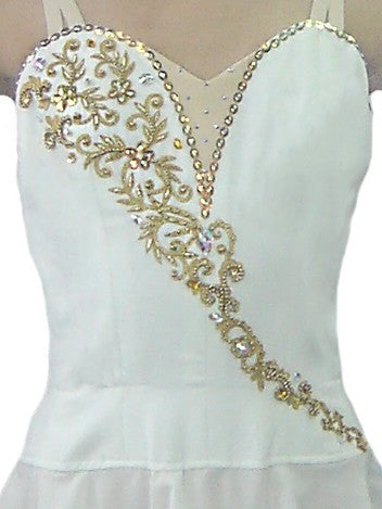The bodice has flesh-colored straps, and is made with semi-stretchy thick fabric.