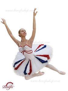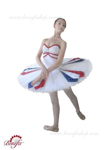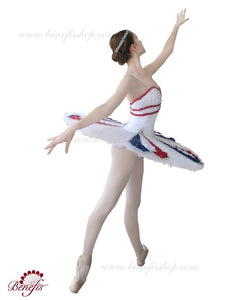 It is a professional stage costume, which is made on the basis of the professional basic tutu #T0001 (see section “Basic and rehearsal tutus”).