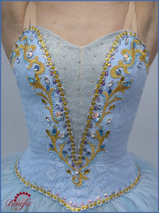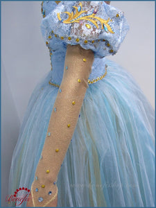 The costume perfectly suits for the Pas de Trois variations from the “Swan Lake” ballet, but it can be also used as the costume for the Queen and Cinderella roles.