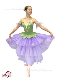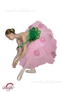The skirt consists of three layers, which have different length. The length of layers is carried out in accordance with the clients’ wish. The skirt is decorated with embellishments in the shape of flowers.