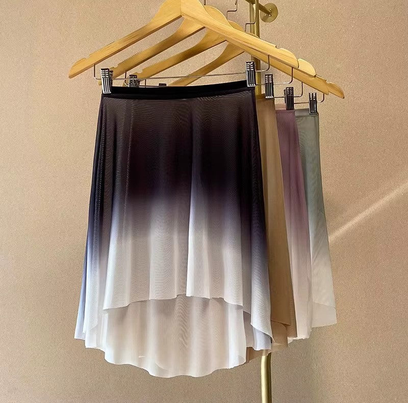 Our "Juliette" mesh skirt is a beautiful mesh, ombre' dyed ballet skirt, perfect for class and rehearsals. Longer in the back and slightly shorter in the front, to perfectly flow with the Dancer's movements.