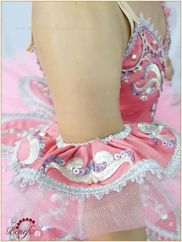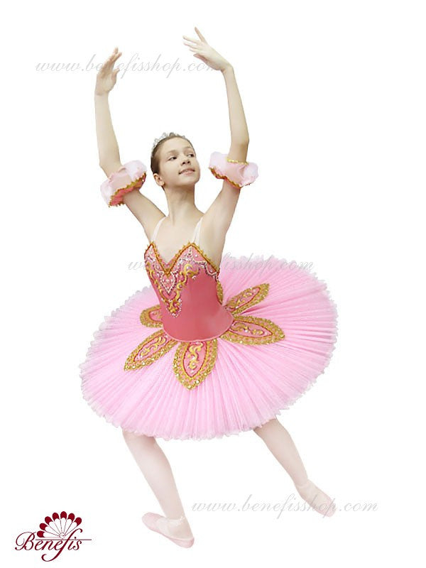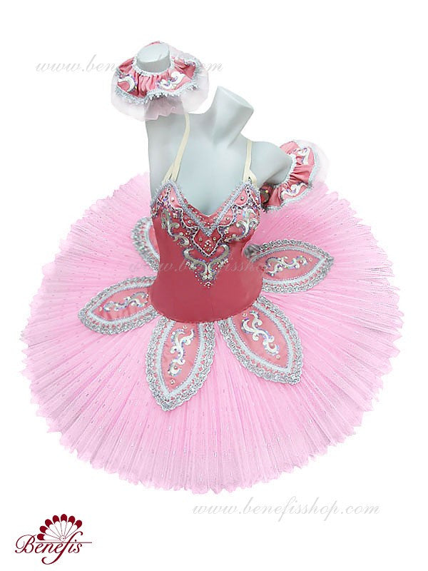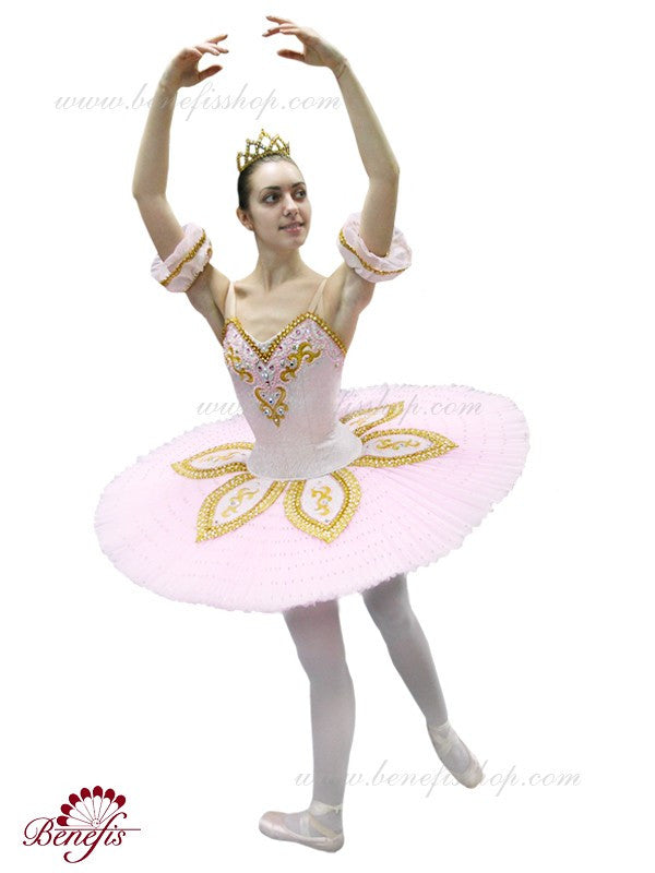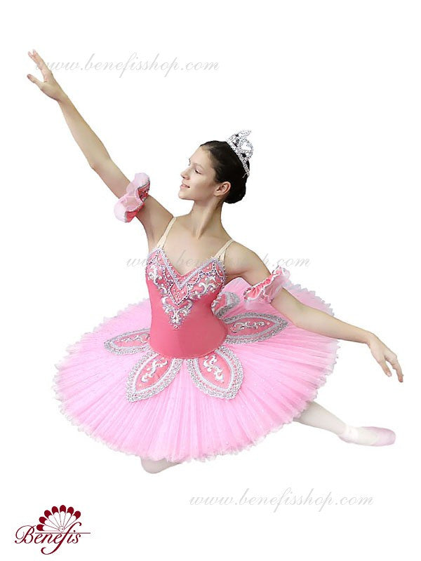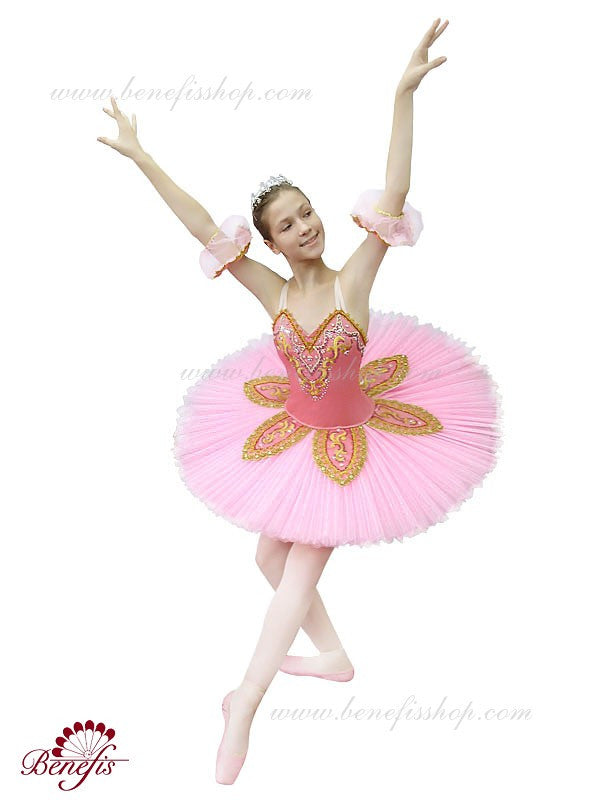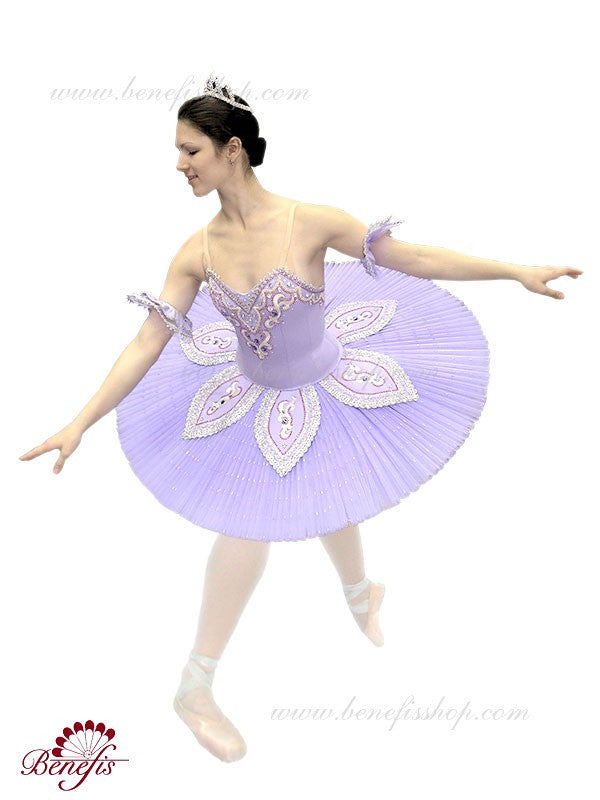 The upper layer of the tutu skirt is embroidered with bugles; a pair of arm puffs decorated with braid comes along with the costume.