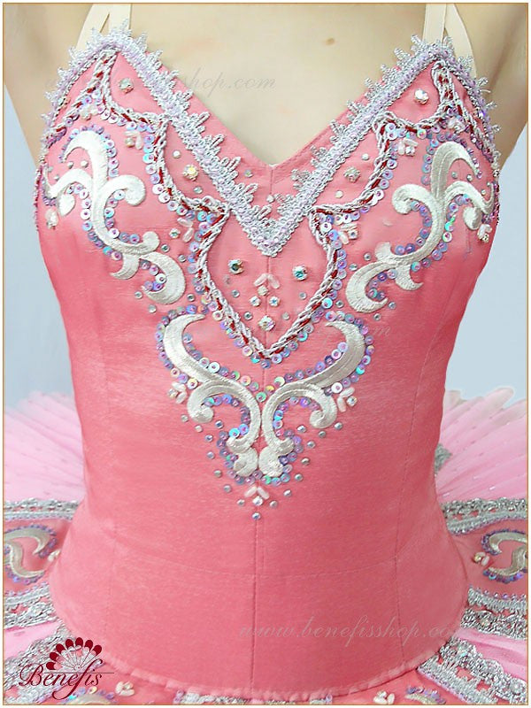 The tutu's overlay is made of the same fabric as the bodice, in the form of six petals.