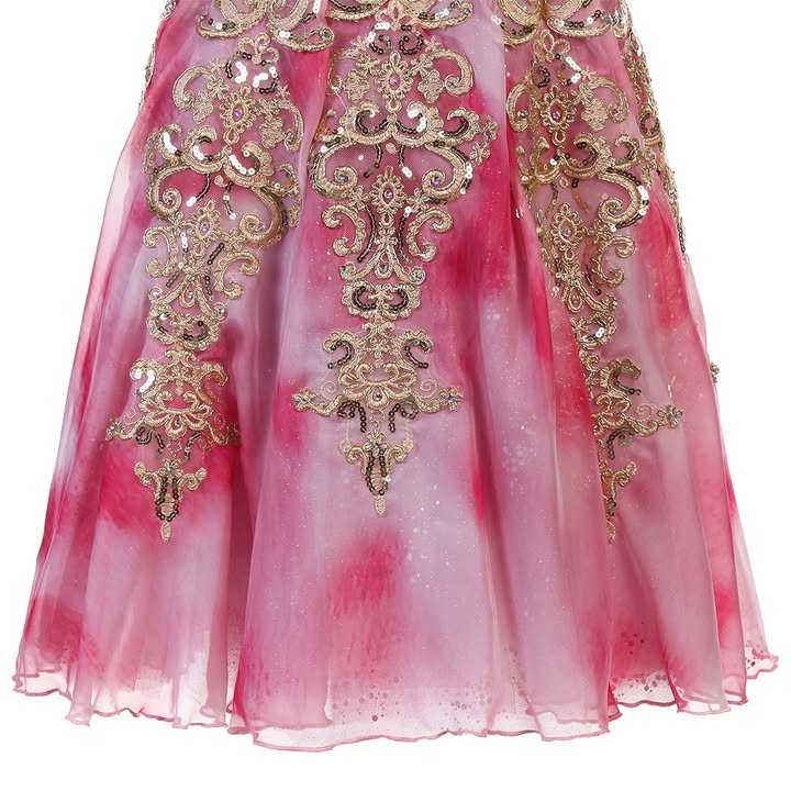 The costume is ombre' dyed in gradient colors of hot pink, and made by a famous designer for Dancewear by Patricia.
