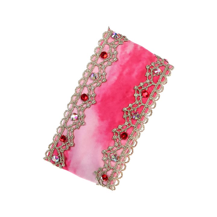The V-shaped bodice is made with ombre' dyed satin and richly decorated with gold appliques and crystals of different colors. Hooks and eyes closure.