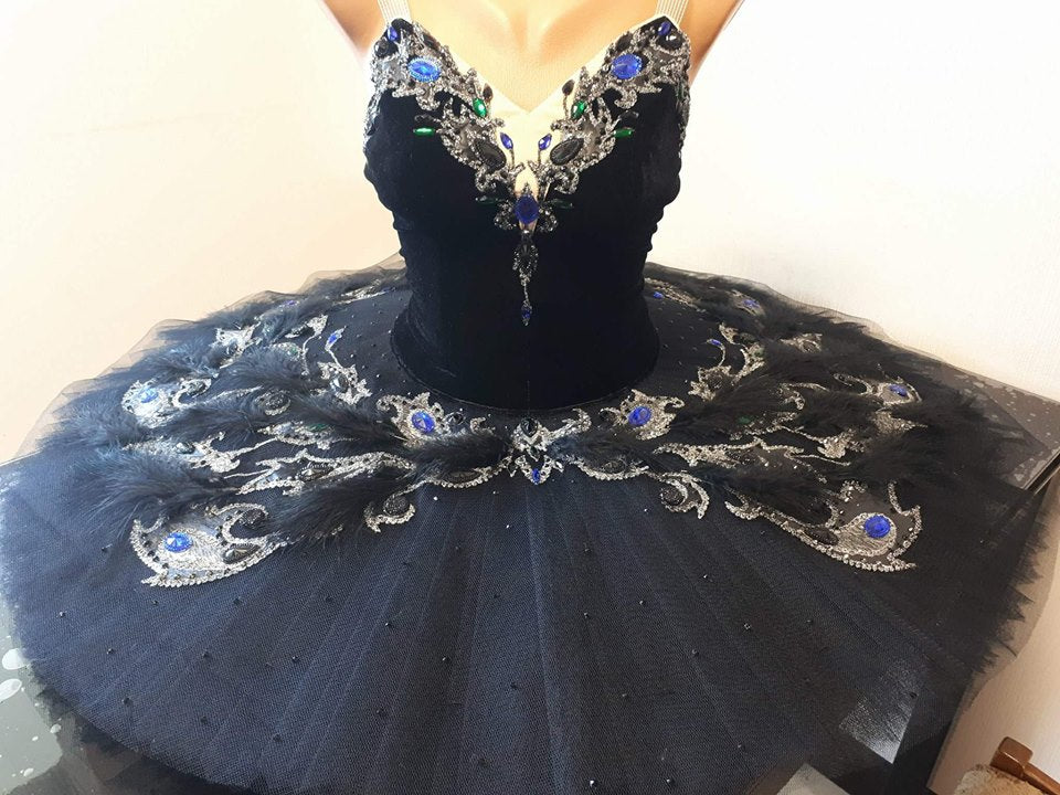 This is the eighth tutu of the "Imperial Collection" and it takes its name from the famous Felia Doubovska, Russian ballerina who trained at the Imperial Theatre and performed in Daghilev's Ballets Russes. This stunning professional stage costume has been created for the role of "Odile" the black swan in Swan lake.