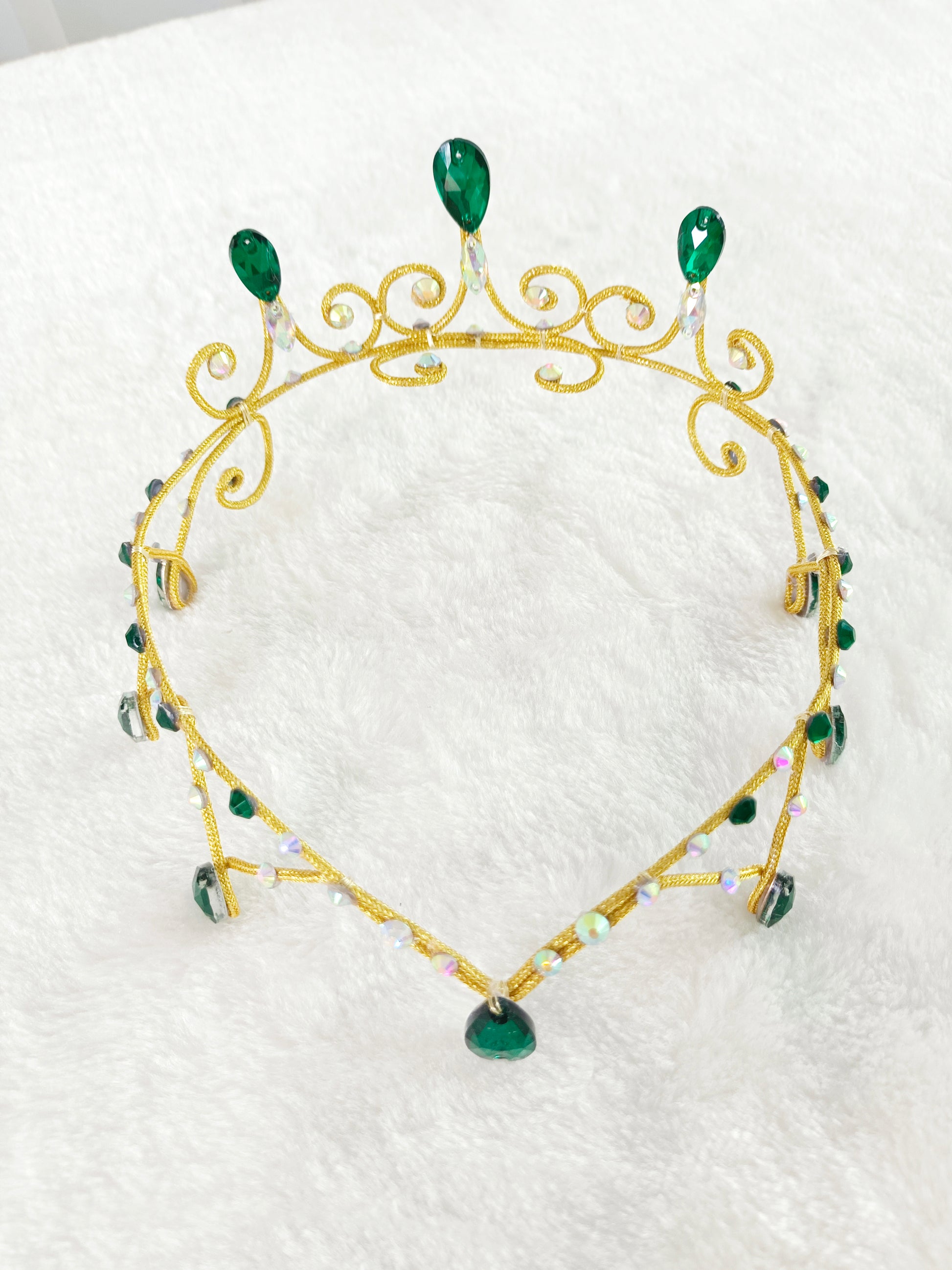 Wonderful headpiece for the role of "Esmeralda". Features a gold frame, green stones and emeralds, the effect is absolutely stunning.